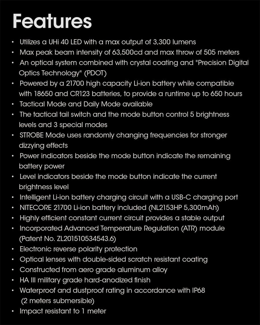 NITECORE MH12PRO 3300 LUMEN UHI USB-C TACTICAL FLASHLIGHT 505 YARDS THROW