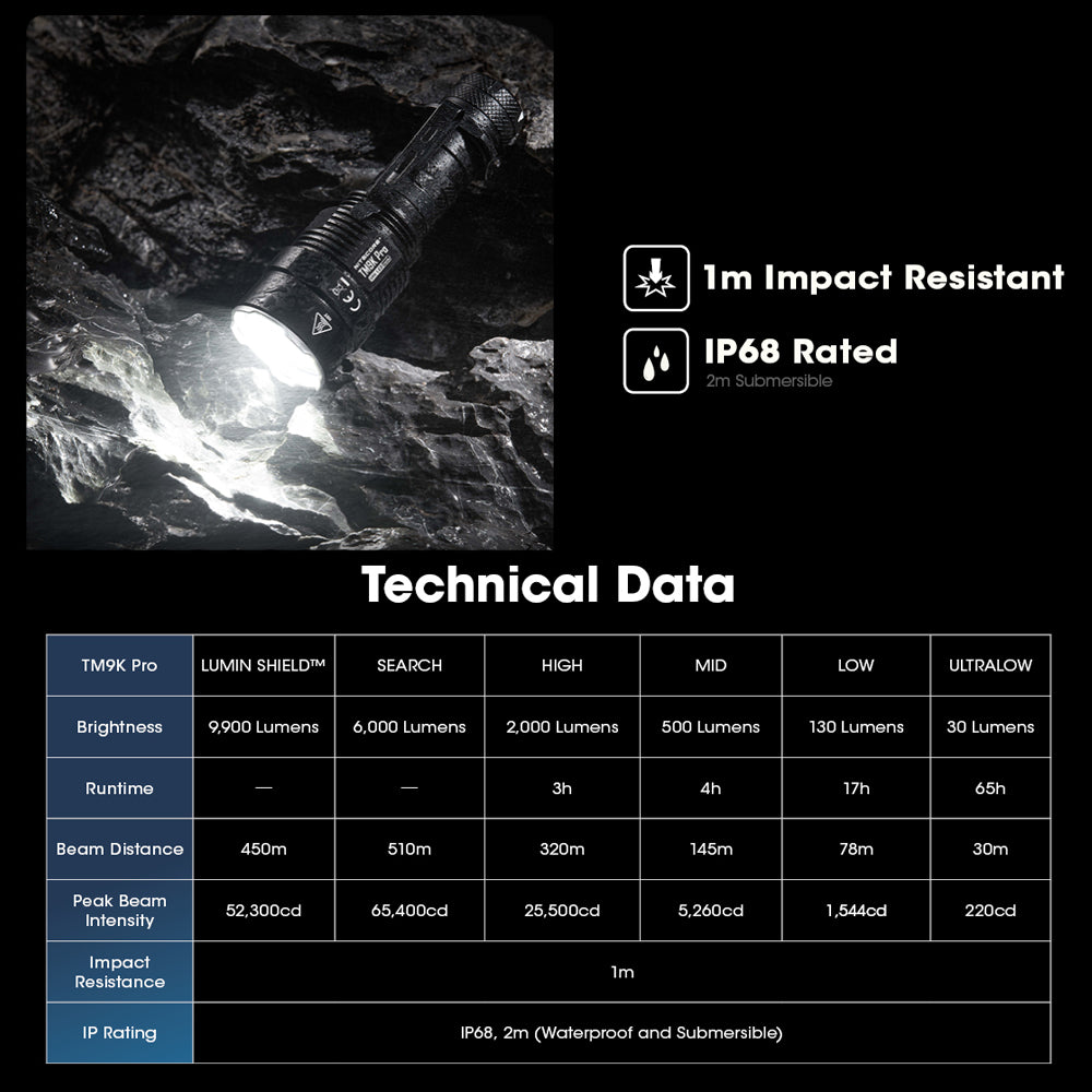 NITECORE TM9K PRO 9900 LUMEN USB-C RECHARGEABLE FLASHLIGHT