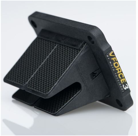 While a VForce reed valve system offers increased bottom end, stronger mid-range and longer top-end, it also allows more airflow which means more horsepower. The VForce3 also incorporates a completely screw free design eliminating any worries of loose screws, or worse engine damage caused by a screw going through your engine. An added benefit of a screw free design is that it also always for super quick reed petal changes. Speaking of reed petals?beginning with the VForce3 we no longer use different "outer" and "inner" reed petals. This also aids in quicker reed petal changes and can make a pack of reed petals last twice as long if you are only getting wear on the outer reed petal edges.