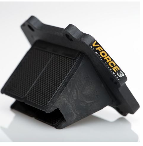 The unique design of the VForce reed valve system features double the reed tip surface over a conventional reed valve design. This has two major benefits: 1) The reed petals only travel half the distance as a conventional reed valve design to get the same airflow. 2) Because the reed petals only need to travel half the distance of that on a conventional reed valve design, there is a greater chance of them being fully opened as well as a better chance of sealing when they are "closed". A reed petal never truly "closes" in a classic sense, as it is always in movement. Consider this, an engine operating at 8,000 RPM results in a reed petal opening and closing 133 times in one second. This fact, sheds light on another VForce advantage. Since the petals are only traveling half the distance, they generally last longer as they receive less wear than the reed petals on a conventional reed valve design.