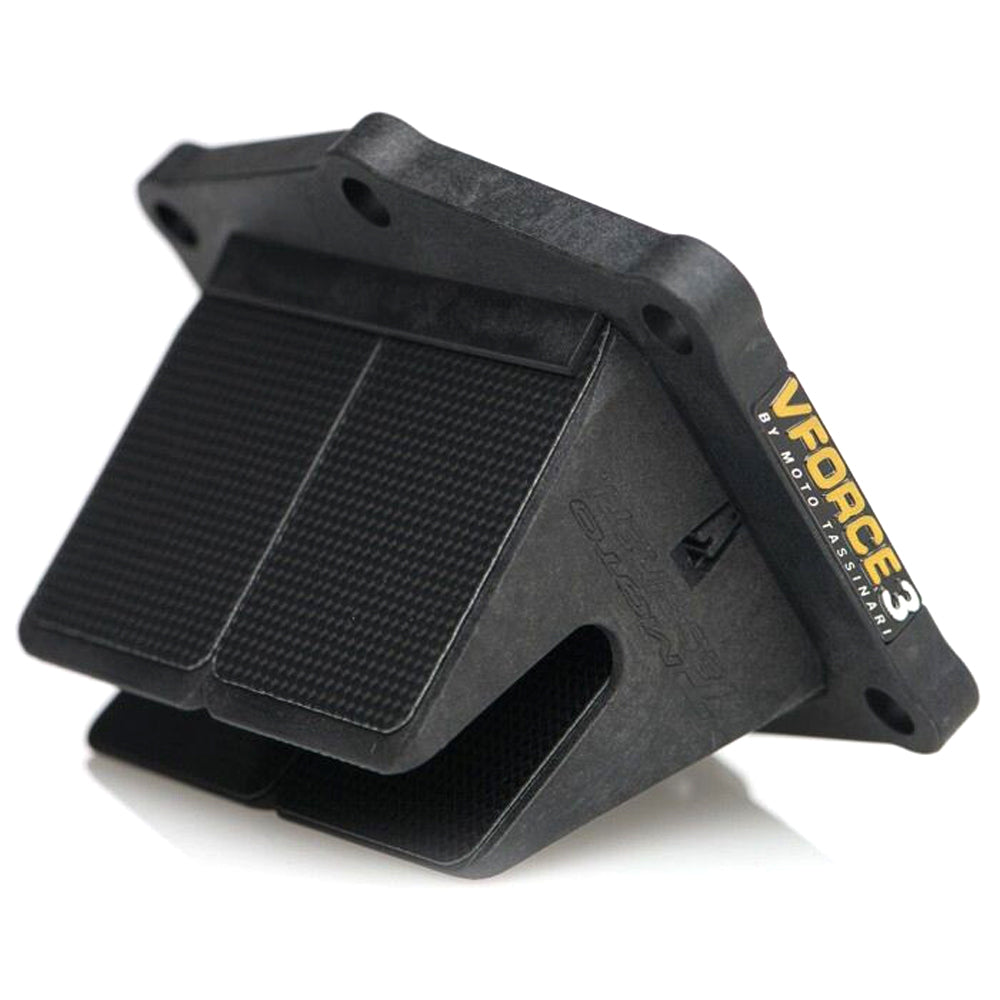 The unique design of the VForce reed valve system features double the reed tip surface over a conventional reed valve design. This has two major benefits: 1) The reed petals only travel half the distance as a conventional reed valve design to get the same airflow. 2) Because the reed petals only need to travel half the distance of that on a conventional reed valve design, there is a greater chance of them being fully opened as well as a better chance of sealing when they are "closed". A reed petal never truly "closes" in a classic sense, as it is always in movement. Consider this, an engine operating at 8,000 RPM results in a reed petal opening and closing 133 times in one second. This fact, sheds light on another VForce advantage. Since the petals are only traveling half the distance, they generally last longer as they receive less wear than the reed petals on a conventional reed valve design.