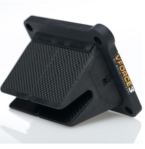 The unique design of the VForce reed valve system features double the reed tip surface over a conventional reed valve design. This has two major benefits: 1) The reed petals only travel half the distance as a conventional reed valve design to get the same airflow. 2) Because the reed petals only need to travel half the distance of that on a conventional reed valve design, there is a greater chance of them being fully opened as well as a better chance of sealing when they are "closed". A reed petal never truly "closes" in a classic sense, as it is always in movement. Consider this, an engine operating at 8,000 RPM results in a reed petal opening and closing 133 times in one second. This fact, sheds light on another VForce advantage. Since the petals are only traveling half the distance, they generally last longer as they receive less wear than the reed petals on a conventional reed valve design.